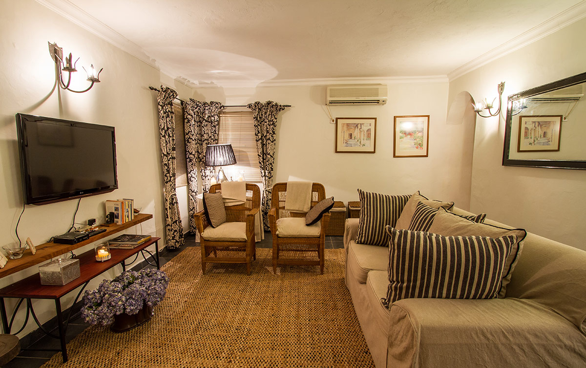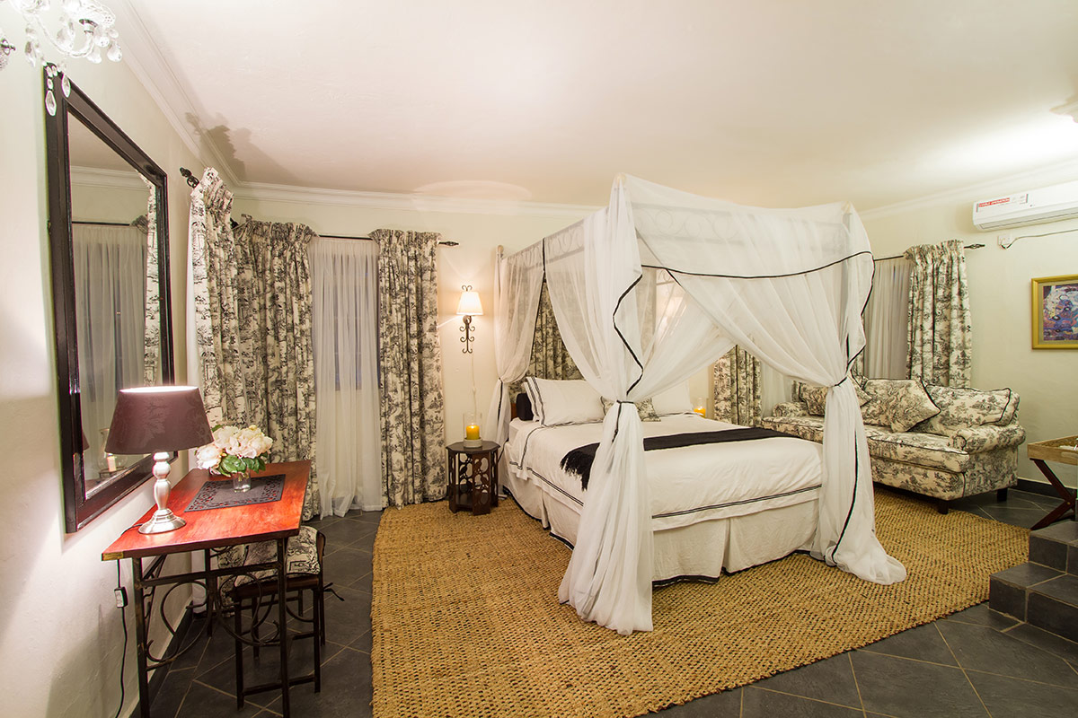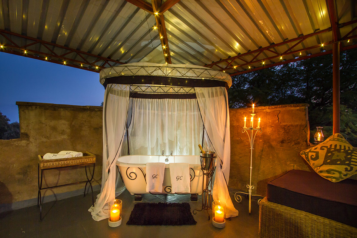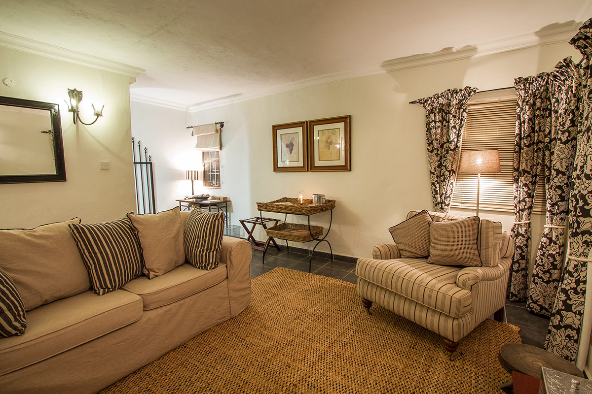 The Tower is the largest of the four and can accommodate up to 3 people. It has a private roof deck which has been equipped with an outdoor tub which makes it a pleasant place to spend the evenings. It has three levels with an en-suite slipper bath and toilet in the luxuriously furnished bedroom complete with a four poster queen sized bed. A shower and toilet are also located on the ground floor adjacent to the kitchen and dining area. The Lounge has been very comfortably furnished and also has a sleeper couch which can accommodate 1 extra person if required.